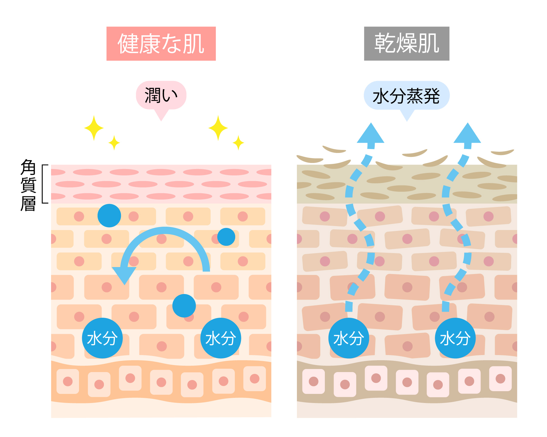 実際にこの水分量が30%を下回ると角層が乾き、肌表面から粉ふき・ゴワつきが出やすくなり、いわゆる乾燥肌のサインが現れます。