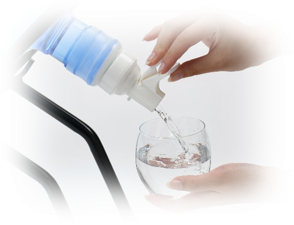 電気が止まってもボトルから直接、お水を手動で注ぐことができます。